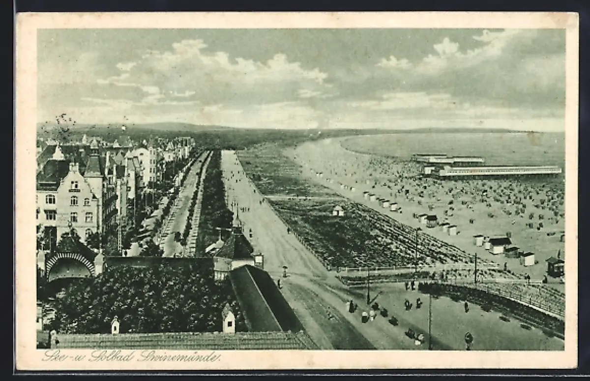 AK Swinemünde, Promenade und Strand aus der Vogelschau