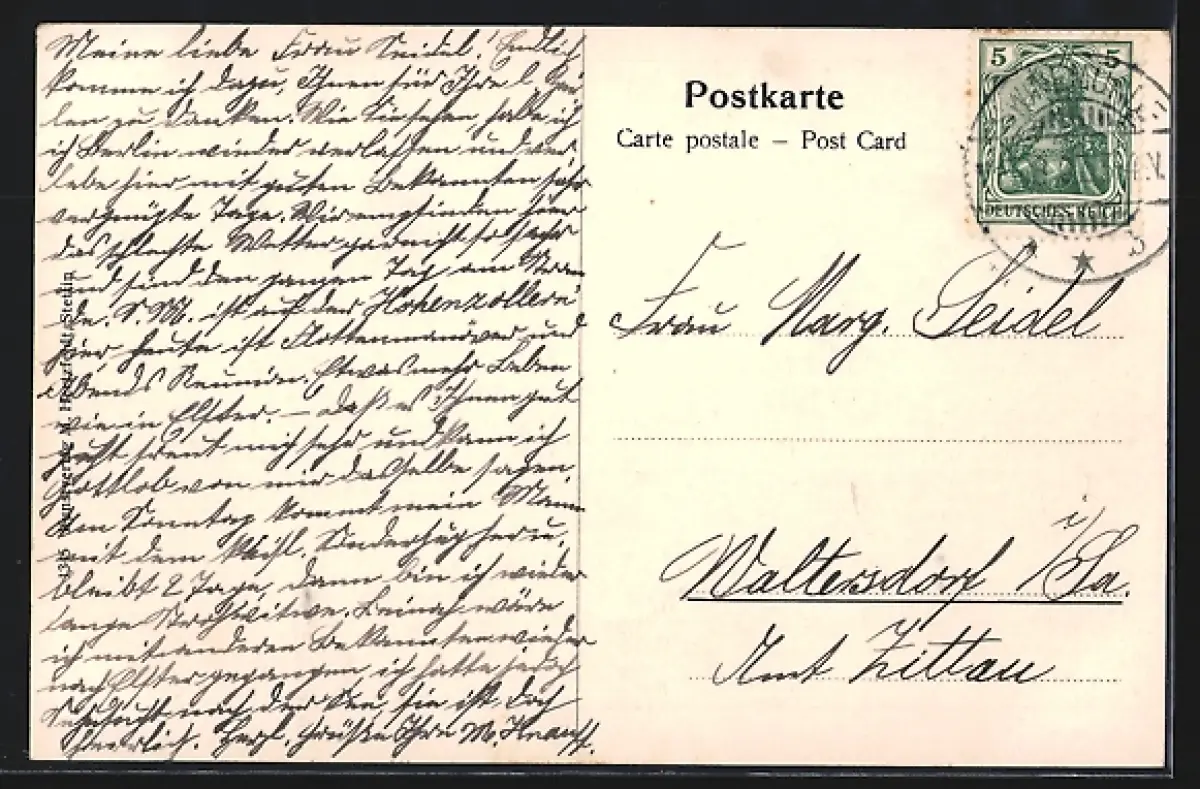 alte Ansichtskarte, gelaufen, Stempelspur, guter Zustand