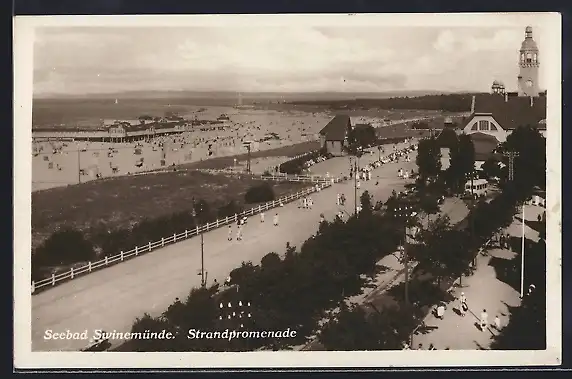 AK Swinemünde, Strandpromenade aus der Vogelschau