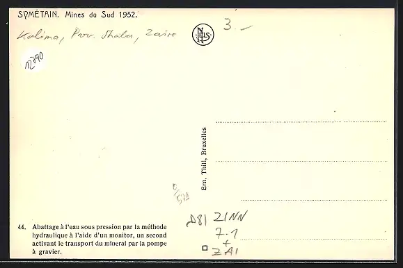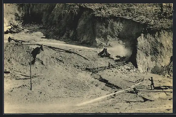 AK Symétain, Mines du Sud 1952, Abattage à l`eau sous pression par la méthode hydraulique..., Zinnmine, Bergbau