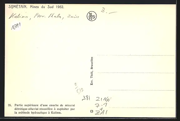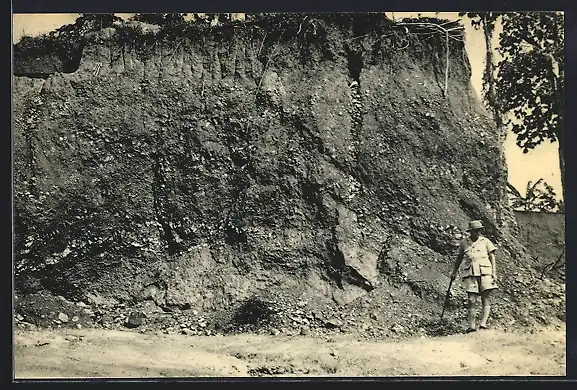 AK Symétain, Mines du Sud 1952, Partie supérieure d`une couche de minerai détrique alluvial..., Zinnmine, Bergbau