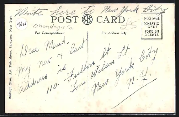 Personenbezogene Daten auf der Rückseite der Karte wurden durch blauen Textmarker unkenntlich gemacht. Die blauen Stellen sind auf die Vorderseite durchgeweicht und wirken sich negativ auf das Postkartenfoto aus