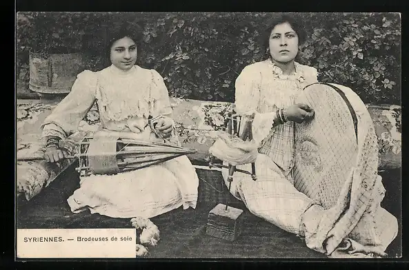 AK Syrien, Syriennes, Brodeuses de soie, Seidenstickerei