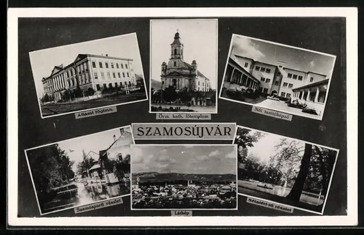AK Szamosújvár, Állami fögimn, Látkép, Szamosparti részlet