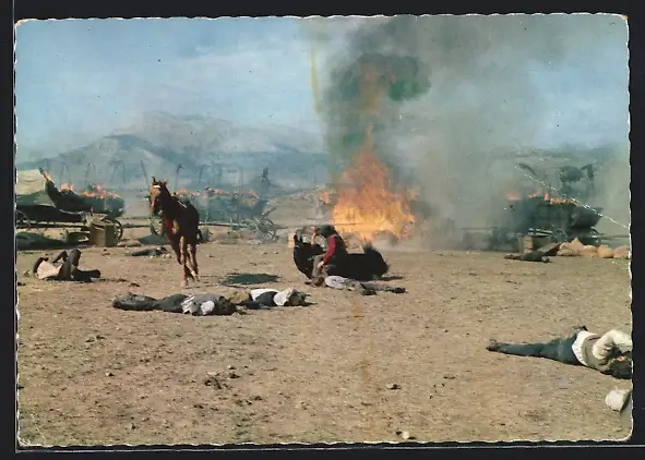AK Szene aus Unter Geiern, Winnetou kommt den Treck zur Hilfe, Karl May
