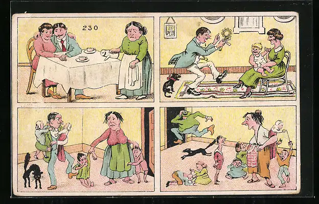 AK Szenen einer Ehe in vier Bildern, frauenfeindlicher Humor