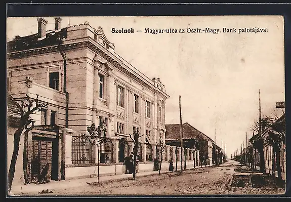 AK Szolnok, Magyar-utca az Osztr.-Magy. Bank palotájaval