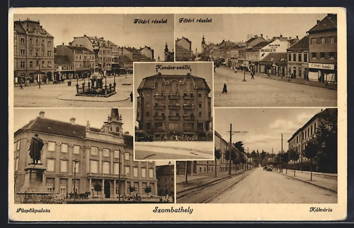 AK Szombathely, Fötéri részlet, Püspökpalota, Kálvária