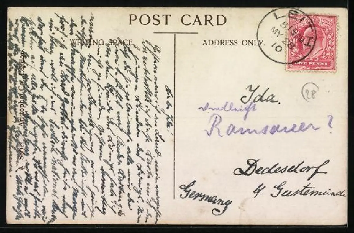 alte Ansichtskarte, gelaufen 1910, guter Zustand