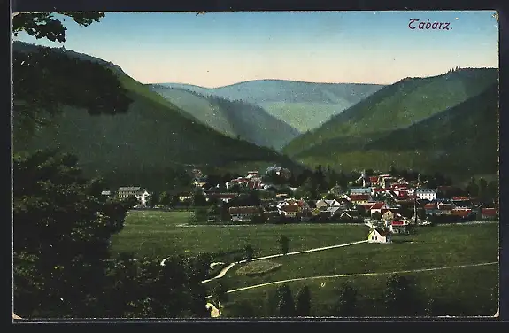 AK Tabarz, Blick vom Waldesrand auf die Ortschaft