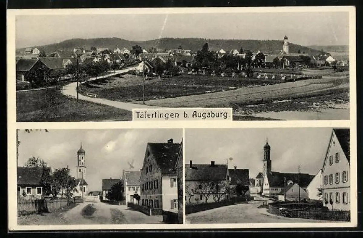 AK Täfertingen b. Augsburg, Gesamtansicht und Strassenpartien mit Kirche
