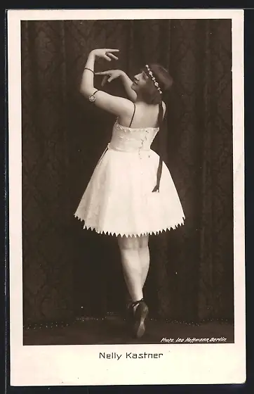 AK Tänzerin Nelly Kastner im weissen Kleid in Tänzerpose