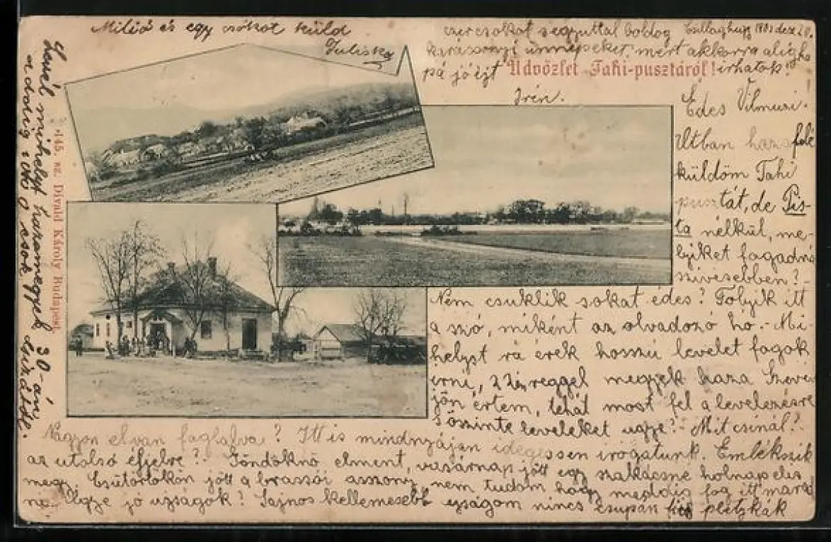 AK Tahi-Pusztá, Ortsansichten mit Feldern