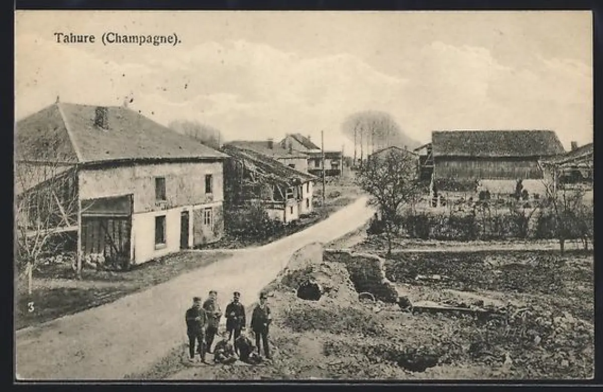 AK Tahure /Champagne, Vue du village avec habitants devant les maisons