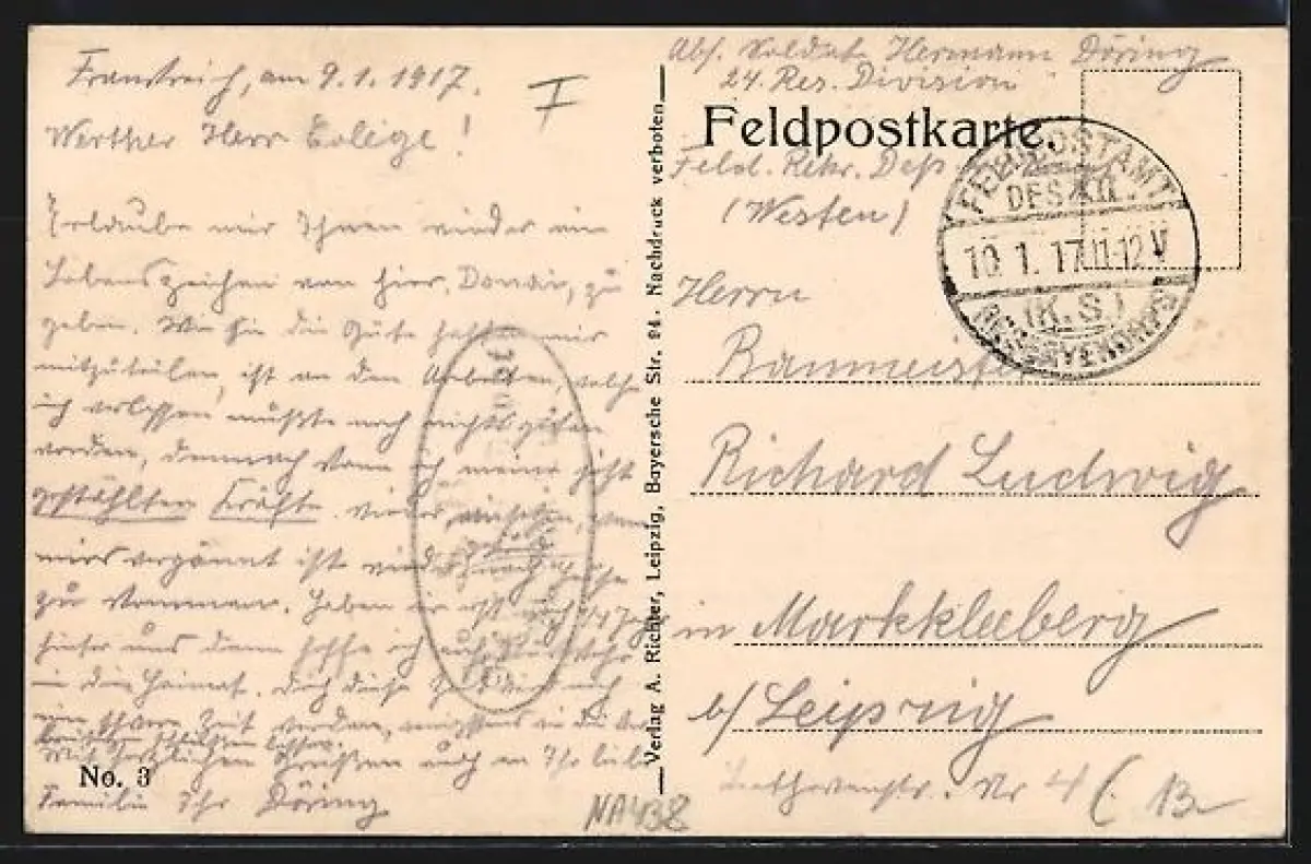 gelaufen 1917, guter Zustand