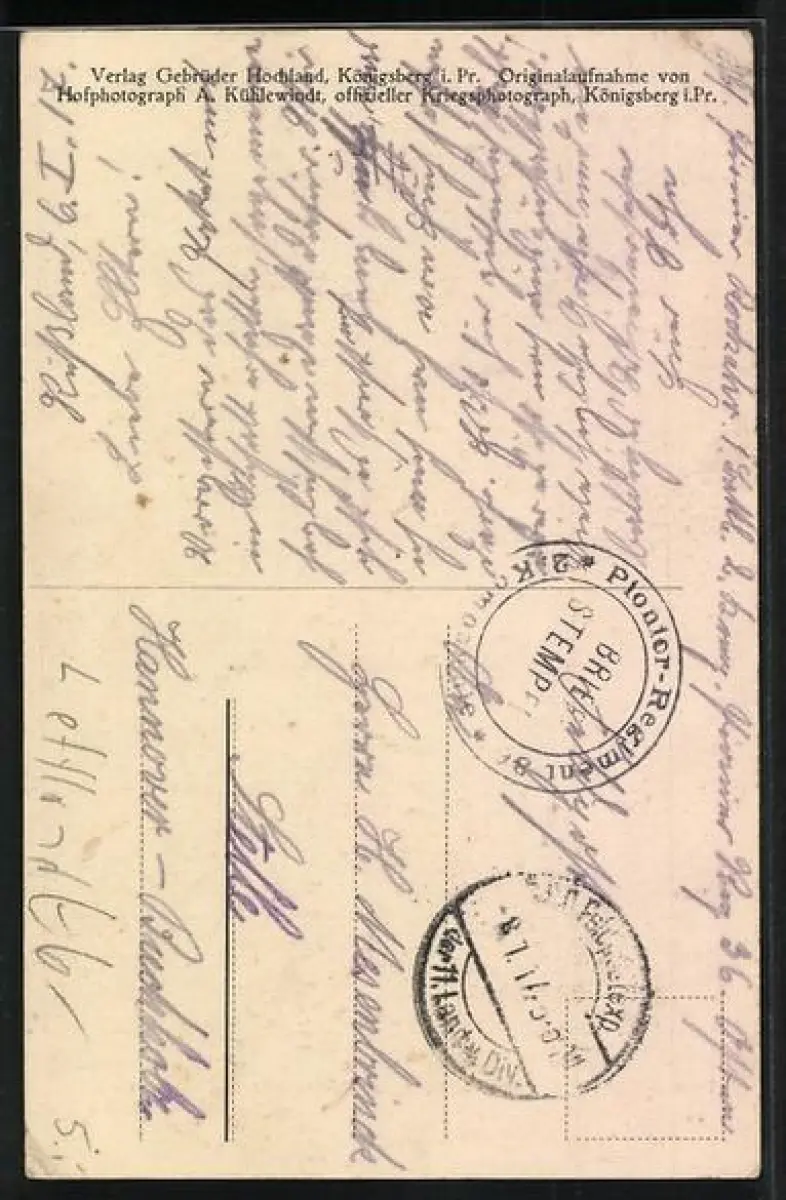 Personenbezogene Daten auf der Rückseite der Karte wurden durch blauen Textmarker unkenntlich gemacht. Die blauen Stellen sind auf die Vorderseite durchgeweicht und wirken sich negativ auf das Postkartenfoto aus
