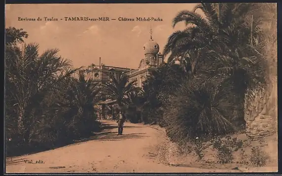 AK Tamaris-sur-Mer, Château Michel-Pacha et palmiers dans le jardin