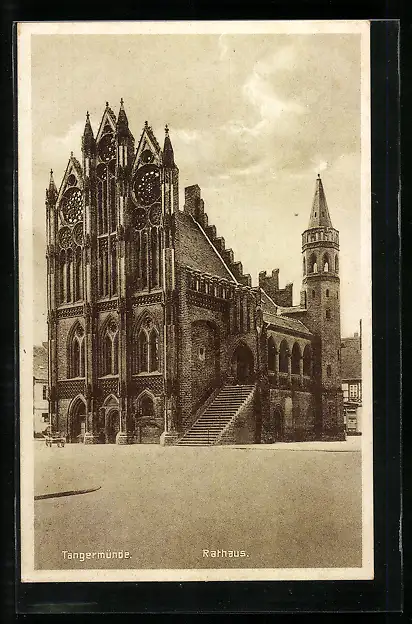 AK Tangermünde, Rathaus mit Strassenpartie