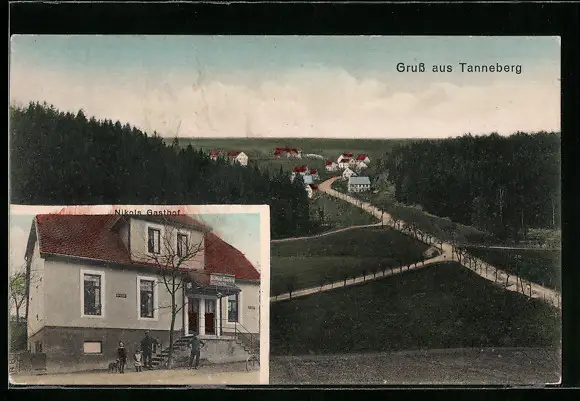 AK Tanneberg, Nikols Gasthof, Ortspartie mit Strassenpartie