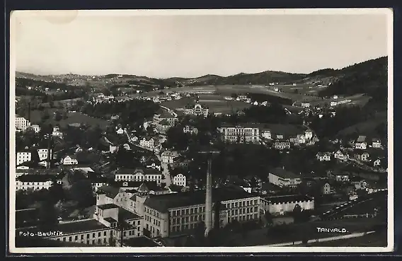 AK Tanvald, Ortsansicht mit Fernblick aus der Vogelschau