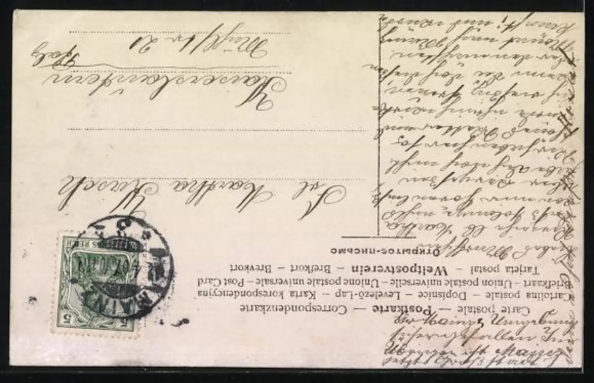 alte Ansichtskarte, gelaufen 1907, Eckknick re. oben, guter Zustand