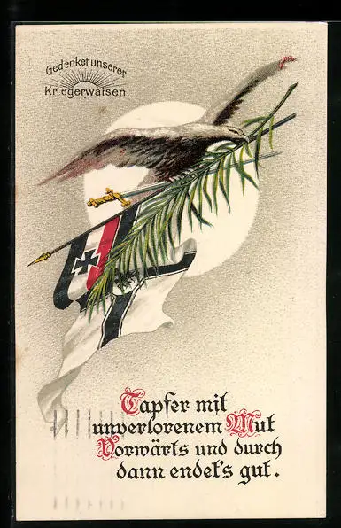 AK Tapfer mit unverlorenem Mut..., Adler mit Palmzweig, Fahnen