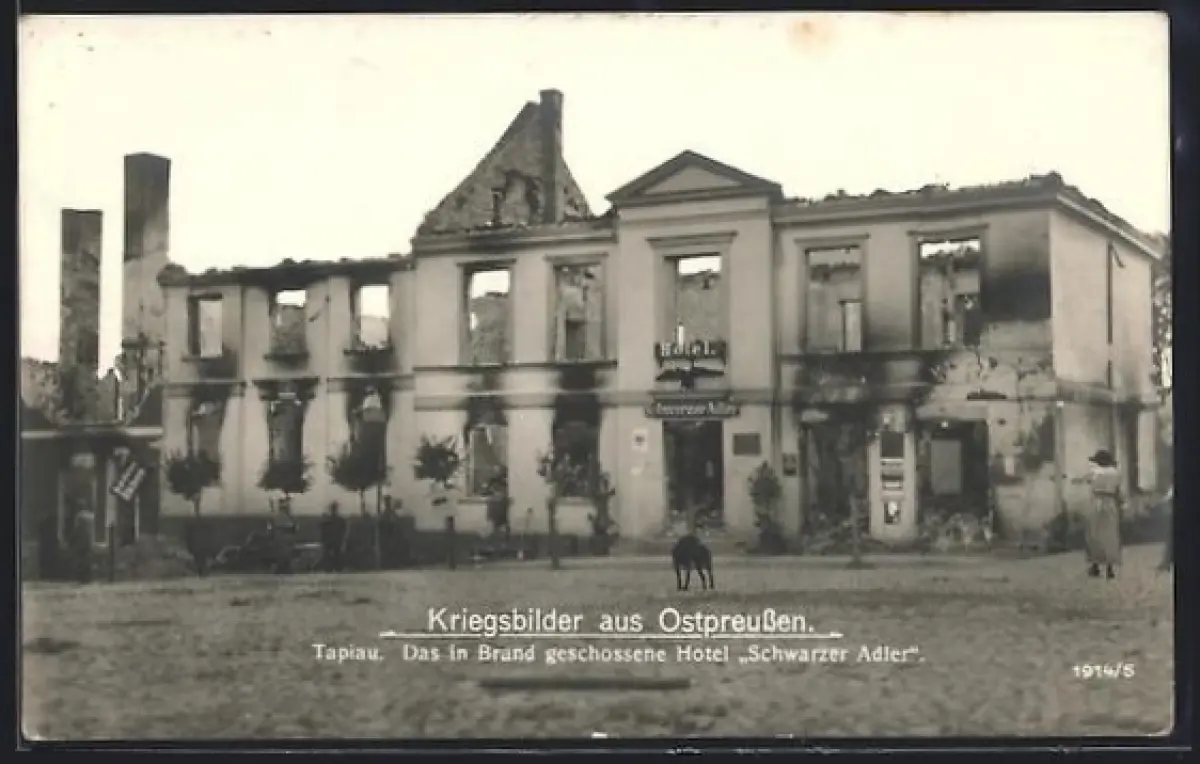 AK Tapiau, Das in Brand geschossene Hotel Schwarzer Adler