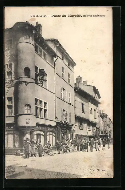 AK Tarare, Place du Marchè, maisons anciennes