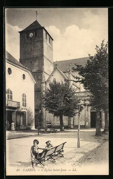 AK Tarbes, L'Église Saint Jean, Kinder auf Bank sitzend