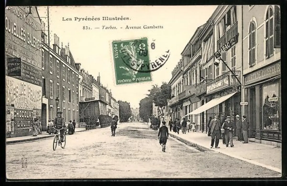 AK Tarbes /Les Pyrénées, Avenue Gambetta animée avec passants et cyclistes