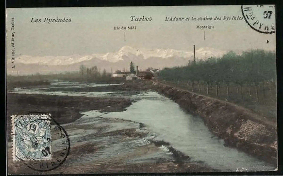 AK Tarbes, Les Pyrénées, L`Adour et la chaîne des Pyrénées, Pic du Midi, Montaigu