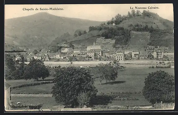 AK Tardets-Sorholus /B.-P., Vue générale de la Section de Sorholus, Chapelle de Sainte-Madeleine, Le Nouveau Calvaire