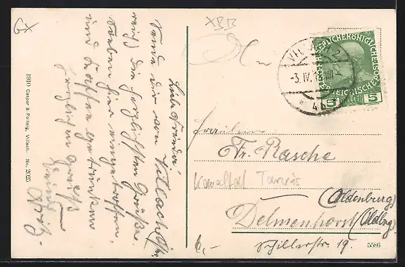 alte Ansichtskarte, gelaufen 1914, Stempelspur, guter Zustand