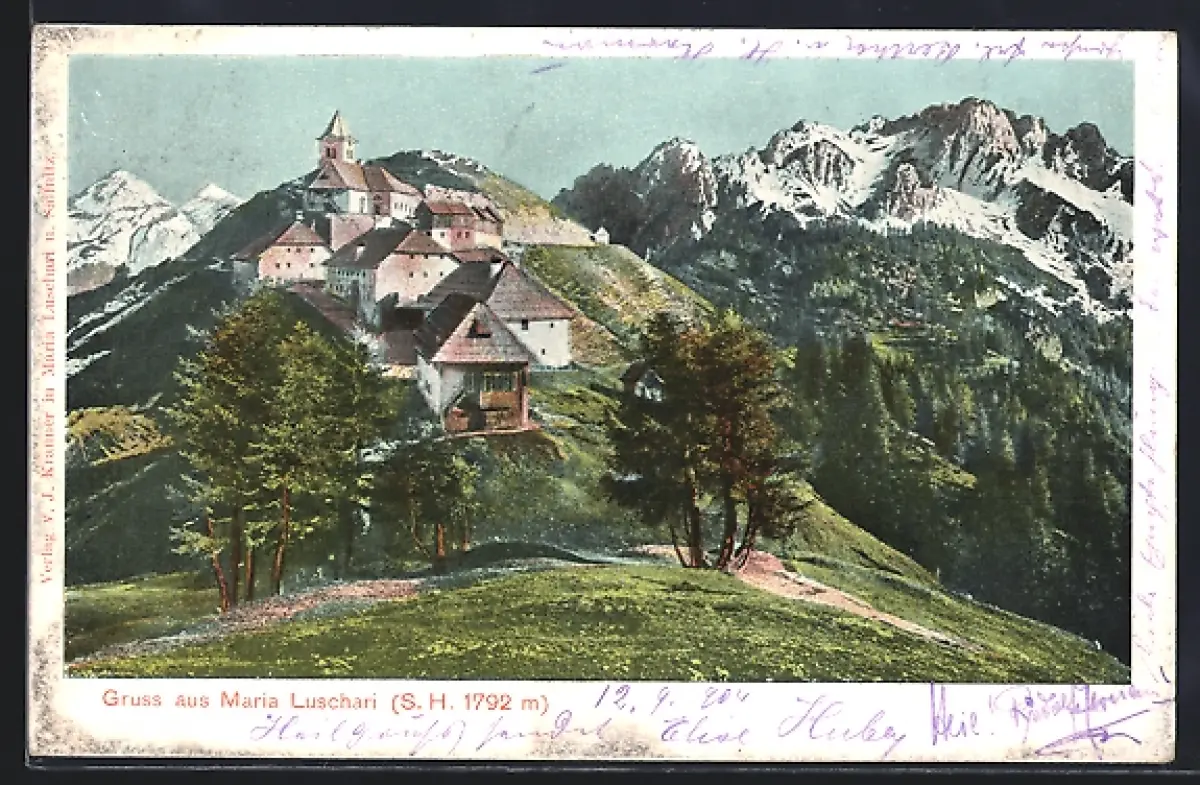 AK Tarvis, Maria Luschari, Ortsansicht mit Kirche