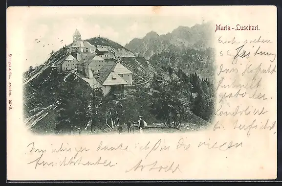 AK Tarvis, Maria-Luschari, Ortsansicht mit Wanderern