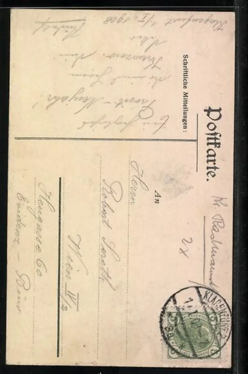 alte Ansichtskarte, gelaufen 1908, Stempelspur, guter Zustand