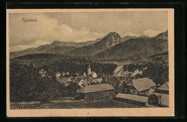 AK Tarvisio, Ortsansicht in Waldlandschaft