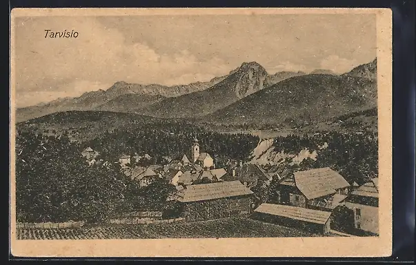 AK Tarvisio, Ortsansicht in Waldlandschaft