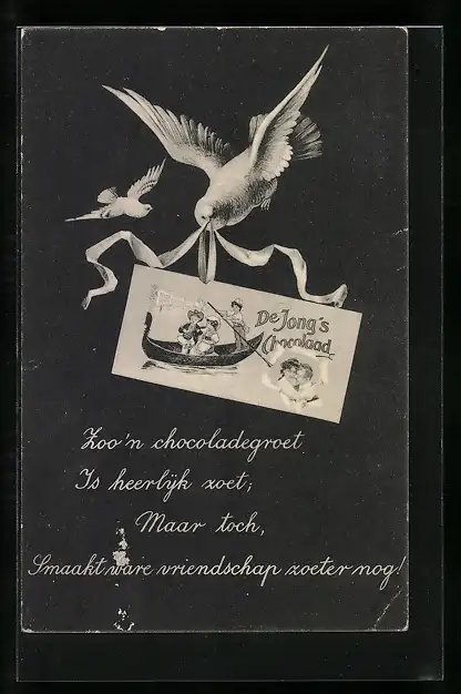 AK Taube bringt eine Tafel De Jong`s Chocolaad