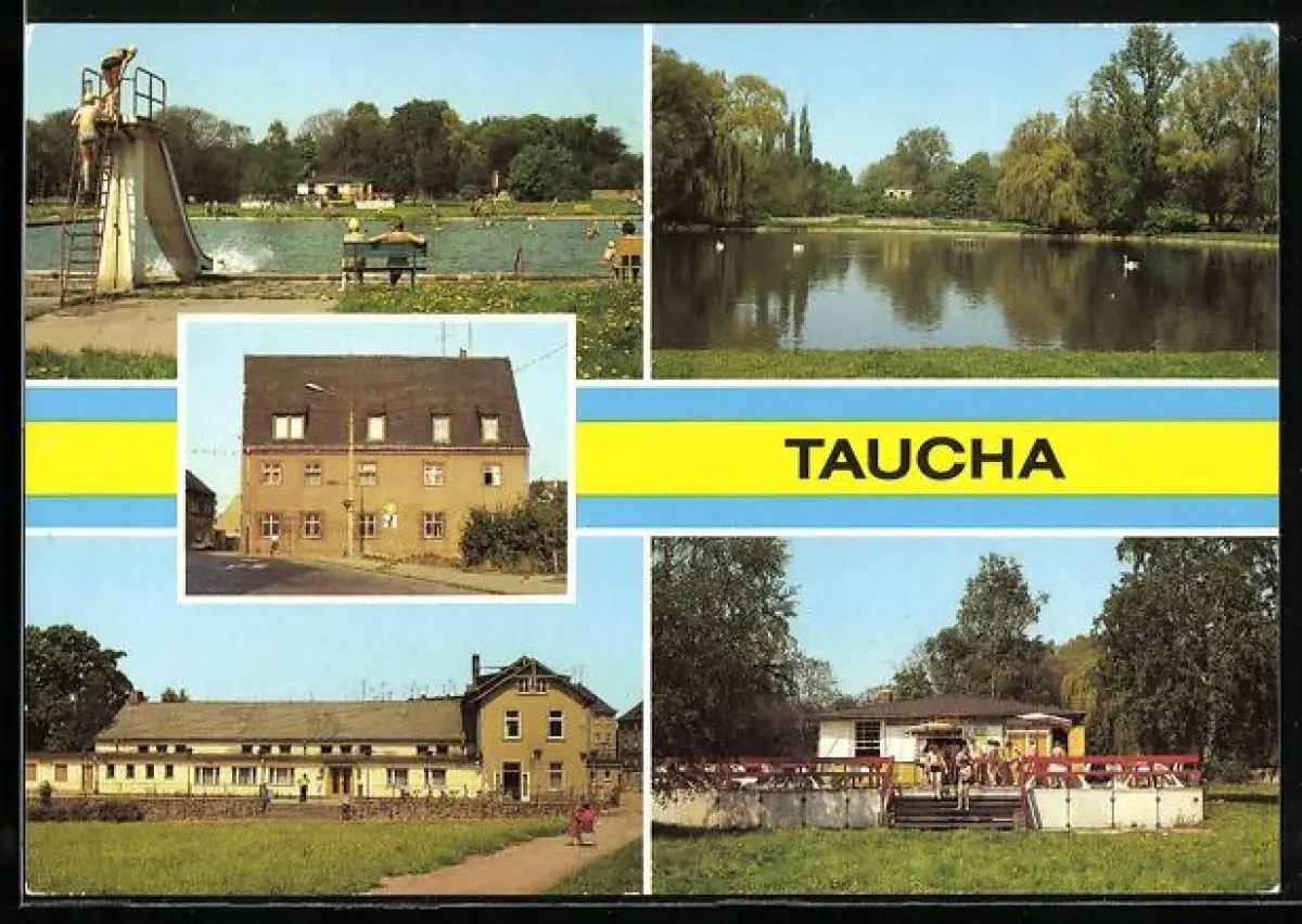 AK Taucha /Leipzig, Stadtbad, Schöppenwiese, HO-Kulturhaus Stadthalle
