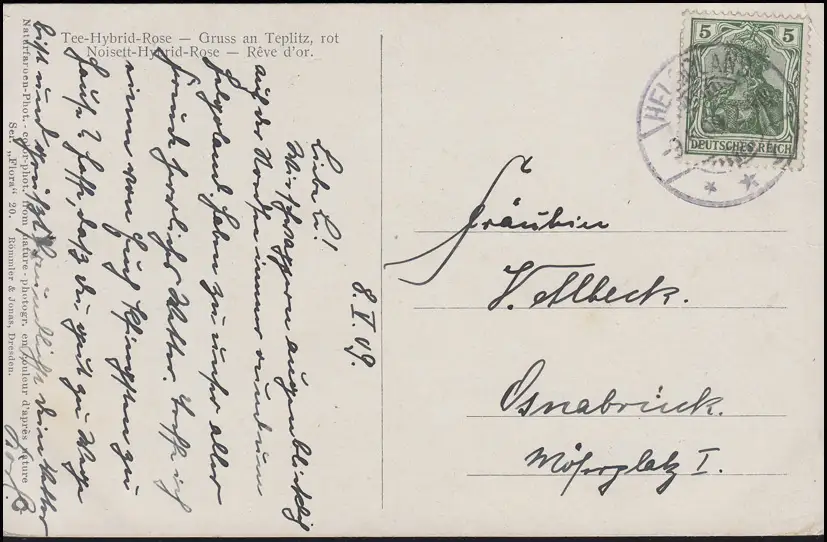 AK Tee-Hybrid-Rose - Gruss an Teplitz, rot, von HELGOLAND 9.5.09 nach Osnabrück