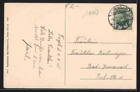 alte Ansichtskarte, gelaufen 1915, guter Zustand