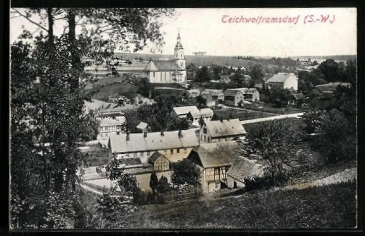 AK Teichwolframsdorf /S.-W., Ortsansicht mit Kirche