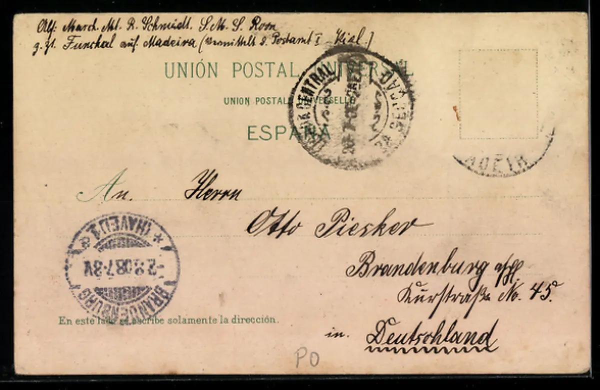 gelaufen 1908, Briefmarke entfernt, Eckknicke li. unten u. re. oben, Stempelspur, guter Zustand