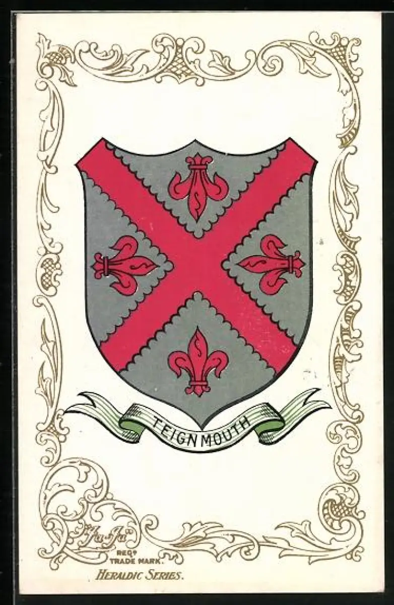 AK Teignmouth, Wappen u. Ornament-Rahmen