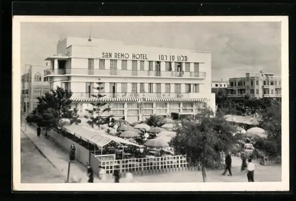 AK Tel-Aviv, San Remo Hotel - Strassenansicht mit Terrasse