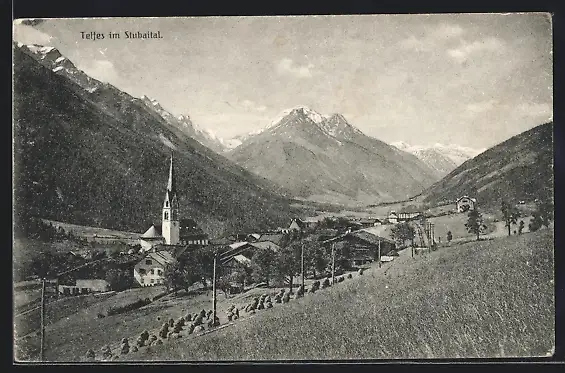 AK Telfes im Stubaital, Teilansicht mit Kirche