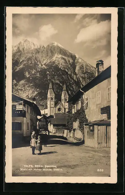 AK Telfs, Motiv mit Kirche und Hoher Munde