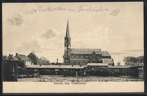 AK Tenbrielen, Panorama mit Baracken u. Kirche, Ortspartie