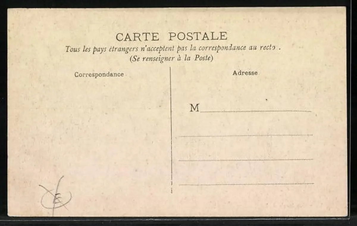 Personenbezogene Daten auf der Rückseite der Karte wurden durch blauen Textmarker unkenntlich gemacht. Die blauen Stellen sind auf die Vorderseite durchgeweicht und wirken sich negativ auf das Postkartenfoto aus